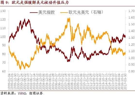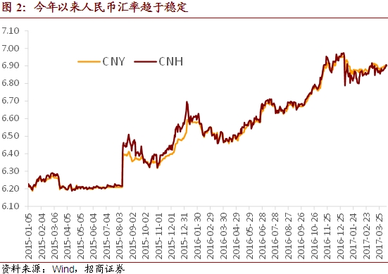最后,人民币汇率贬值预期有望企稳。我国经济基本面的逐步企稳,欧元区经济的持续复苏减轻了美元指数因欧元弱势而被动走强的压力,以及“特朗普交易”逆转等因素,均有利于人民币汇率以及贬值预期的逐步改善。