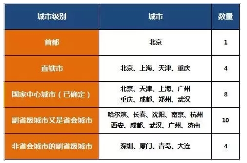 目前国内城市级别,可分为以下几类↓