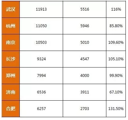 呵呵~别着急,咱继续往后看,武汉、郑州、合肥、济南、青岛……这些城市房价之前不足万元一平,无奈去年集体暴涨,现如今均价都已一万多一平,合肥可能要更高点。