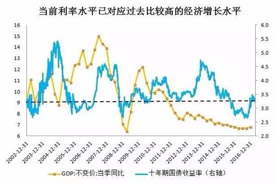 4、但当前和2013年最大的不同是:“金融去杠杆”和“稳是主基调”相互牵制,使本轮利率上行周期可能会非常漫长,因此在整个过程中仍然会给市场喘息的机会——今年2月以前的利率上行过快,预计6月临近季末之前难以再大幅上行。目前十年期国债收益率处于3.3%左右的水平,虽然和历史相比其实并不高,但需要看到:在2013年以前,3.3%的利率水平对应着8%~9%左右的GDP增速,而目前的GDP增长中枢只有6.5%,如果短期内利率水平继续上行,那么实业端将面临巨大的融资成本压力,这会对监管层的经济维稳目标带来挑战。因此我们认为相比2013年利率水平的快速上行,这一次的利率上行周期可能会非常漫长——虽然银行监管加强会导致中期的流动性收紧和利率上升,但在“稳是主基调”的政策导向下,一旦利率上行动摇了经济维稳的根基,又可能在短期倒逼央行货币政策放松,使利率水平和股市都迎来阶段性喘息的机会。去年11月到今年2月,国内利率水平上行速度极快,十年期国债收益率从最低的2.65%上升到最高的3.5%,上行幅度已达到30%,因此预计目前监管层很难再容忍进一步的利率上行——在6月临近季末之前,我们认为市场利率水平并不会继续上行,甚至可能在“维稳”政策的干预下短期下行。