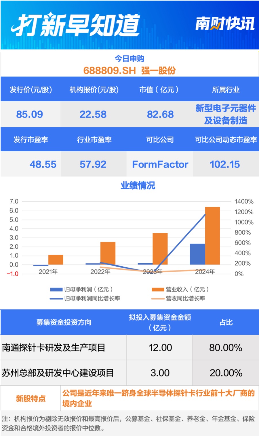 国产半导体探针卡龙头等三只新股同日申购 另有一只新股上市
