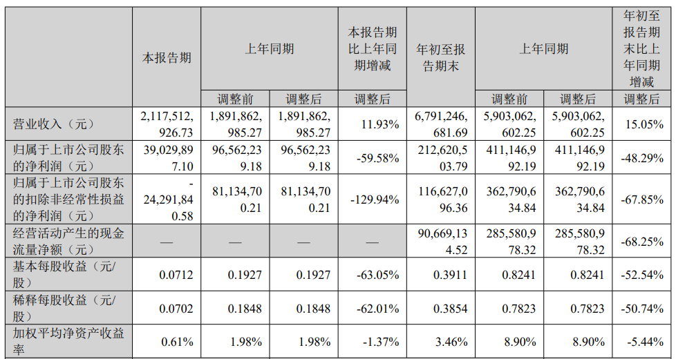 麦格米特2025年三季报主要财务指标