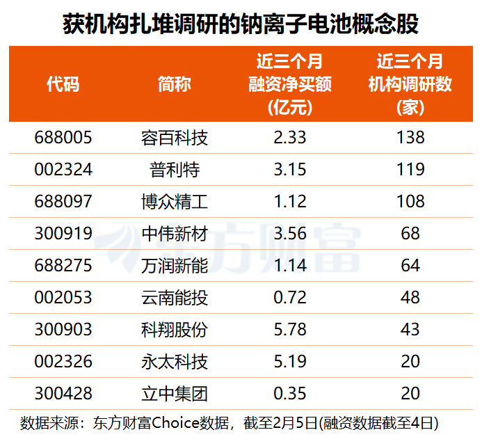 两巨头大动作!钠电池加速“上车” 多只概念股获机构扎堆调研
