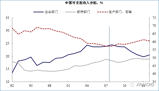 图 居民部门在收入分配中的占比也开始上升