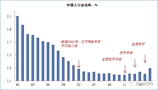 图 在逐步放开二孩政策之后,中国的出生率出现小幅上升