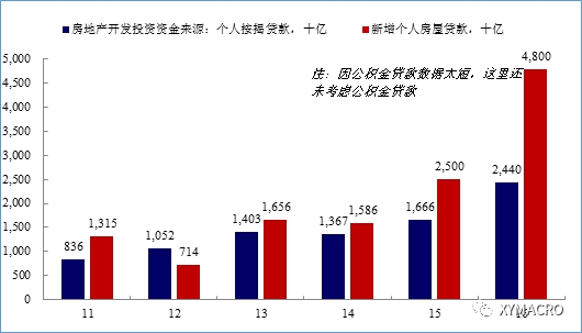 2)中国正在从一手房交易市场逐步转向二手房交易市场。2000年时,中国城镇人均住宅建筑面积为20平米,而2016年已达到37平米。中国居民的房地产投资已经跨过了最初的快速增长的阶段。两个数据也可以侧面印证这个现象。一是部分一线城市的二手房交易已开始超过一手房。二是从房贷数据来看,2015年~2016年,银行口径放出去的房贷规模要明显大于开发商口径资金来源中的房贷口径(当然,这个缺口里可能还包括开发商未将收到的房贷资金用于投资的部分).