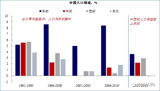 图 人口从向东部集中转为向内陆城市集中