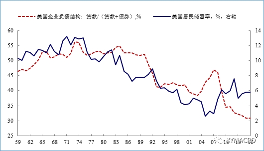 图 美国经验:储蓄率下降伴随着直接融资上升