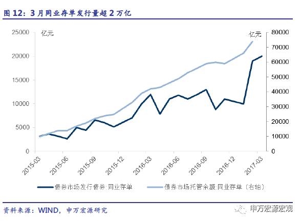 第四,监管趋严导致商业银行杠杆和期限错配风险暴露。今年来对商业银行监管持续加强,银监会密集出台多项监管文件,标志着此前部分银行通过表外理财、同业存单等快速冲规模,再通过加杠杆和期限错配冲利润的扩张模式开始受限。目前表外理财已纳入MPA考核,但同业存单尚未纳入广义信贷和同业负债考核,对发行方和投资方而言均具有较大吸引力。由于对相关监管措施即将出台且可能会采取新老划断的预期,银行打时间差冲规模的动机较强。3月份银行间同业存单发行超过2万亿,发行利率也攀升至4.5%左右,量价均创下历史新高,且期限越来越短。部分银行在资产负债期限错配严重的情况下,同业存单到期将带来巨大的资金滚动缺口,例如3月份同业存单到期量1.5万亿,创下历史新高,巨额滚动需求加大了短期资金面波动。