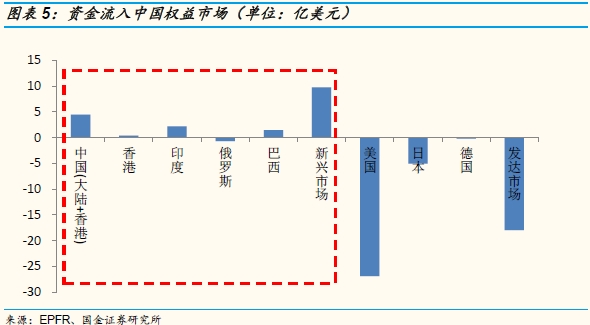 EPFR数据显示,最近一期(0413-0419)资金净流入中国(大陆+香港)权益市场,净流入4.48亿美元(上期净流入4.33亿美元).香港市场出现0.39亿美元的资金净流入。