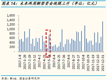 潜在解禁资金方面:本周(0424-0430)市场将迎来约349.22亿解禁压力,下周(0501-0507)、下下周(0508-0514)市场将分别迎来160.27、715.21亿的潜在解禁压力规模。下周定增解禁规模约为127.50亿。解禁个股方面,未来两周解禁市值(绝对额)较大的个股:驰宏锌锗、中鼎股份、智慧农业、雪榕生物、科华恒盛等。