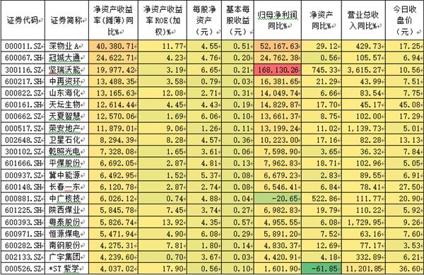 净资产收益率代表了上市公司的盈利能力,这一指标的提高表明公司的盈利能力在增长,即单位资产创造的净利润在增加。不过报告期内很多公司增幅比较大,与其基数低有关,这点需要了解。而基数低有行业原因,也有企业原因,甚至事实清楚有偶然原因。