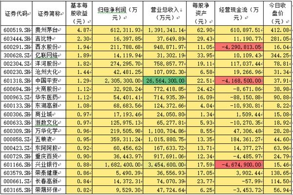 一季度每股收益前20家公司